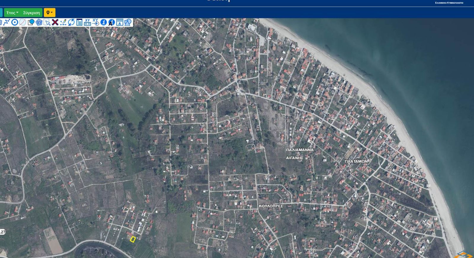 Το ακίνητο είναι μία καλή οικονομική ευκαιρία για παραθαλάσσιο τουρισμό. Βρίσκετε 70 μέτρα από την Επ. Οδό Ομολίου – Μεσαγγάλων. Η πρόσοψή του έχει μήκος 15,10 μέτρα και βλέπει σε χαλικοστρωμένο δρόμο 6 μέτρων. Έχει μέγεθος 280 τ.μ. με ορθογώνιο παραλληλόγραμμο σχήμα σε επίπεδο έδαφος. Προσανατολισμός είναι Νότιο-Νότιο-Ανατολικός με θέα στην φύση και βουνά του Κάτω Ολύμπου. Από την θάλασσα απέχει 1.150 μέτρα γνωστή για της αμμουδιές με ιαματικές ιδιότητες που προσελκύουν πολλούς επισκέπτες και ρηχά κρυστάλλινα νερά.